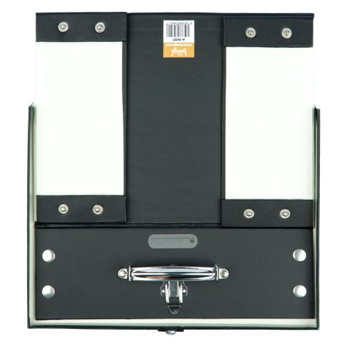 • Skladací kufrík z pevného laminovaného papiera s okovanými rohmi.