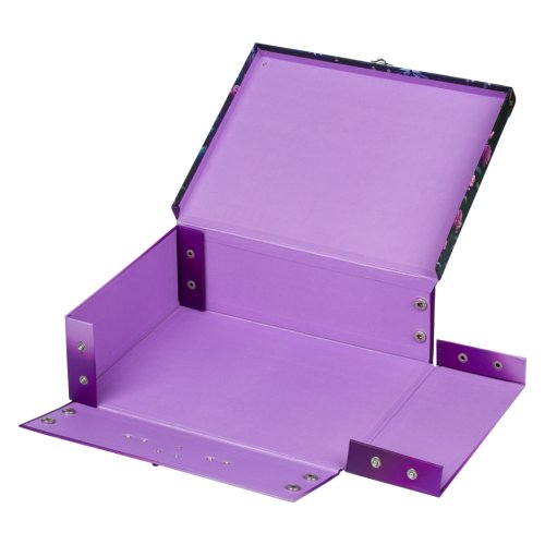 • Skladací kufrík z pevného laminovaného papiera s okovanými rohmi.