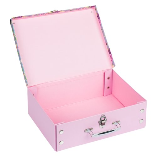 • Skladací kufrík z pevného laminovaného papiera s okovanými rohmi.