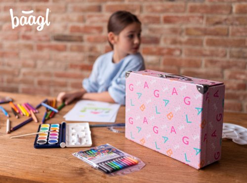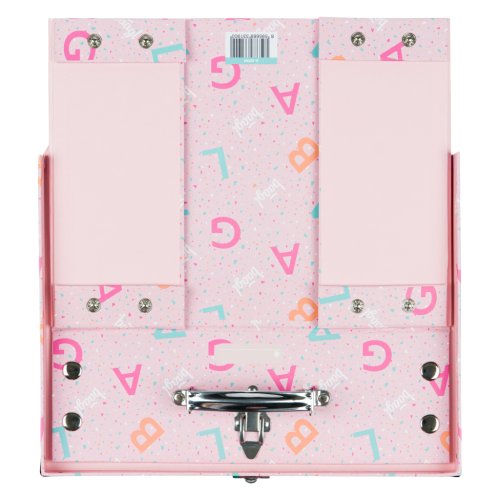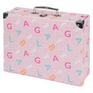 • Skladací kufrík z pevného laminovaného papiera s okovanými rohmi.