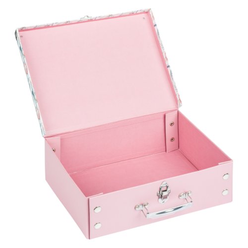 • Skladací kufrík z pevného laminovaného papiera s okovanými rohmi.