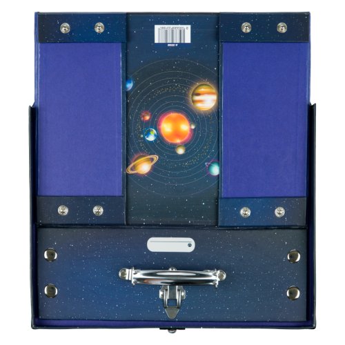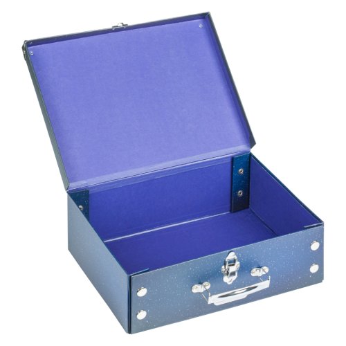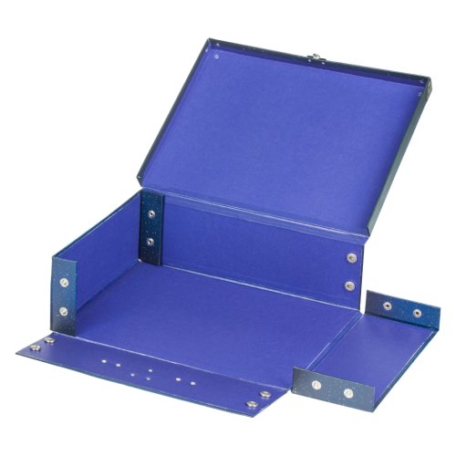 • Skladací kufrík z pevného laminovaného papiera s okovanými rohmi.