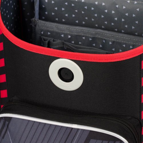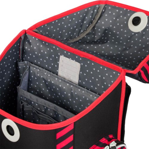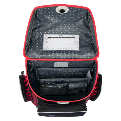 • Vnútri aktovky je priehľadné vrecko s rozvrhom a vnútorný organizér umožňujúci rovnomerné rozloženie hmotnosti.