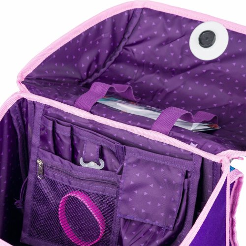 • Vnútri aktovky je priehľadné vrecko s rozvrhom a vnútorný organizér umožňujúci rovnomerné rozloženie hmotnosti.