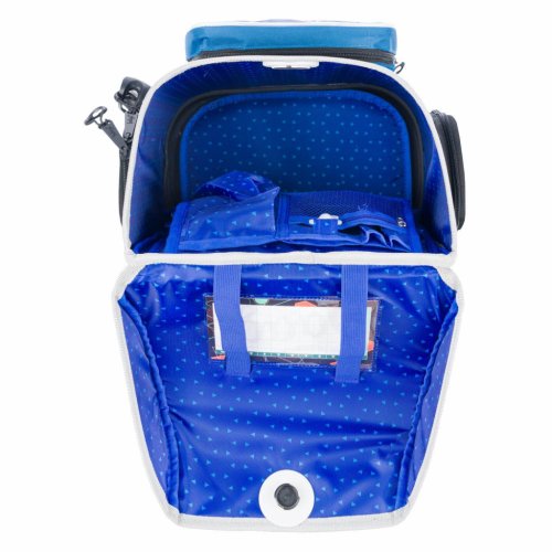 • Aktovka je vybavená elastickým svietidlom, ktoré zaistí lepšiu viditeľnosť a bezpečnosť školáka. Vďaka jednoduchému úchytu je možné svietidlo zavesiť kamkoľvek.