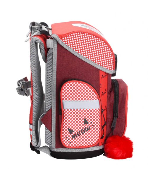 • Školská aktovka s vystuženým telom, vnútorným organizérom a tromi oddelenými vreckami a zapínaním na kvalitnú pracku.