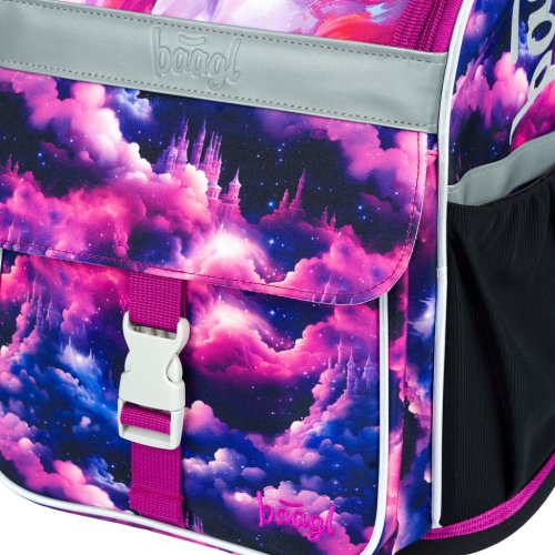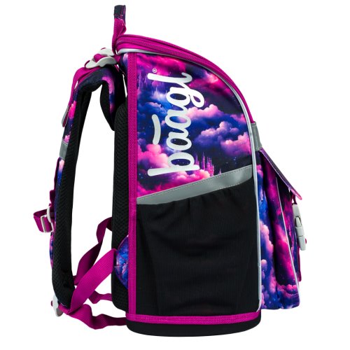 • Vnútri aktovky je priehľadné vrecko na rozvrh a vnútorný organizér umožňujúci rovnomerné rozloženie hmotnosti, doplnený gumičkou na fixáciu.