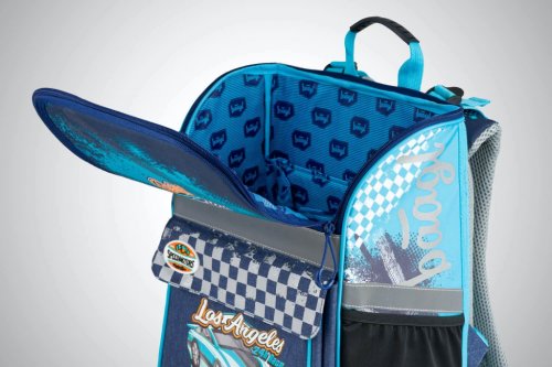 • Aktovka disponuje novým vyklápacím systémom otvárania na zips, vďaka ktorému sa školák ľahšie dostane k svojim pomôckam priamo z lavice a umožňuje lepší prehľad o obsahu školskej tašky.