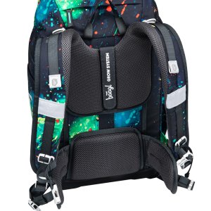 • Ergonomicky tvarovaný chrbát dopĺňajú plne nastaviteľné ramenné popruhy s priedušným polstrovaním, odnímateľný bedrový pás a hrudný popruh, ktoré zaručujú maximálny komfort, stabilitu a správne rozloženie záťaže na detskom chrbte.
