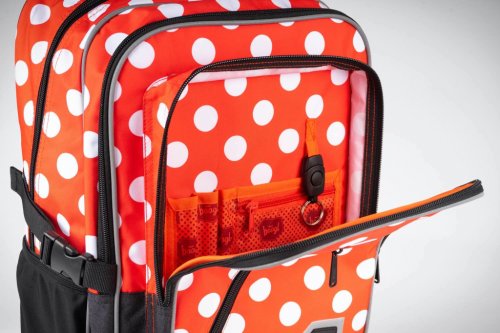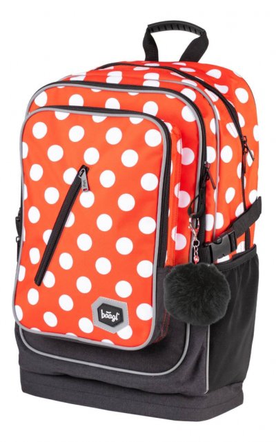 Trojkomorový školský plecniak Cubic Bodky, vhodný od 3. triedy 1. stupňa ZŠ a tiež pre 2. stupeň ZŠ. Batoh bol úspešne testovaný v ITC Zlín.