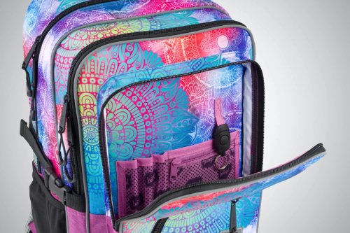 Trojkomorový školský plecniak Mandala, vhodný od 3. triedy 1. stupňa ZŠ a tiež pre 2. stupeň ZŠ. Batoh bol úspešne testovaný v ITC Zlín.
