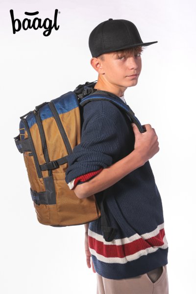 • Postranné vrecká, ideálne napríklad na tritánové fľaše BAAGL, sú vyrobené z pevného materiálu zladeného s designom batohu.