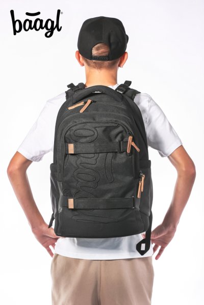 • Postranné vrecká, ideálne napríklad na tritánové fľaše BAAGL, sú vyrobené z pevného materiálu zladeného s designom batohu.