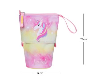 • Jedinečné puzdro na pastelky a fixy je vyrobené z pevného, vodeodolného materiálu, vďaka čomu dokonale drží tvar a spoľahlivo chráni uložený obsah.