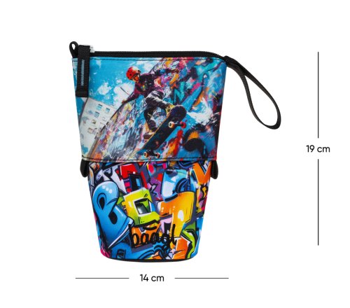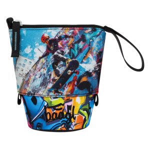 • Jedinečné puzdro na pastelky a fixy je vyrobené z pevného, vodeodolného materiálu, vďaka čomu dokonale drží tvar a spoľahlivo chráni uložený obsah.
