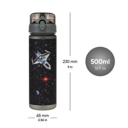 V školskej výbave nesmie chýbať poriadna fľaša na pitie – a fľaša od BAAGLu sa hodí ako do školy, tak na výlety alebo do športového krúžku. <br><br> Uzamykateľné viečko neprepustí ani kvapku nápoja a zaručuje jednoduché a intuitívne používanie. K fľaši je pripevnené aj pútko na pohodlné nosenie v ruke. <br> <br> Certifikovaný tritánový materiál zaručuje maximálnu bezpečnosť a kvalitu nápoja, pretože nevydáva nepríjemný plastový zápach, ako je tomu u iných plastových materiálov, a tiež neobsahuje žiadne zdraviu škodlivé látky (BPA, PVC, ftaláty a ďalšie). Ostatne výrobky z tritánu sa používajú aj v zdravotníctve. <br><br> Objem fľaše je 500 ml. <br> <br> Fľašu neodporúčame umývať v umývačke riadu.