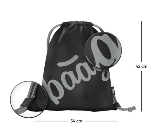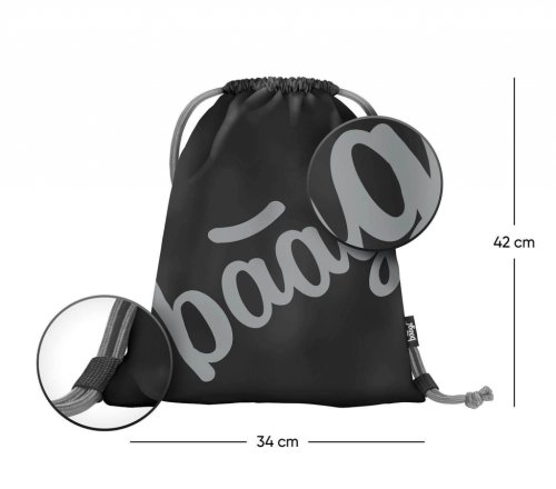 • Vrecko na cvičky alebo prezuvky v čiernej farbe s logom Baagl, ktoré v tme svietia • Zdrhovanie pomocou pevných šnúrok, ktoré zároveň umožňujú nosenie na chrbte