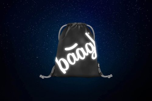 • Vrecko na cvičky alebo prezuvky v čiernej farbe s logom Baagl, ktoré v tme svietia