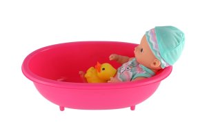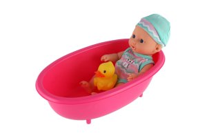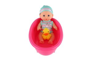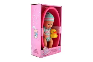 Hurá do kúpeľa! Roztomilá bábika bábätko so svojou žltou kačičkou pozýva deti k hre na každodennú starostlivosť. Bábika je uložená v plastovej vaničke a pripravená na kúpacie dobrodružstvo. Vďaka ideálnej veľkosti padne dobre do detských rúk a podporuje rozvoj empatie, jemnej motoriky aj predstavivosti. Vanička s príslušenstvom tvorí kompletný herný set, ktorý si deti zamilujú. Veľkosť bábiky: 22 cm Rozmery balenia: 20 cm x 33 cm x 10 cm Vhodné pre deti od 3 rokov