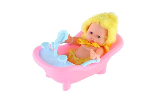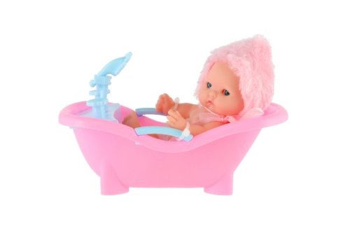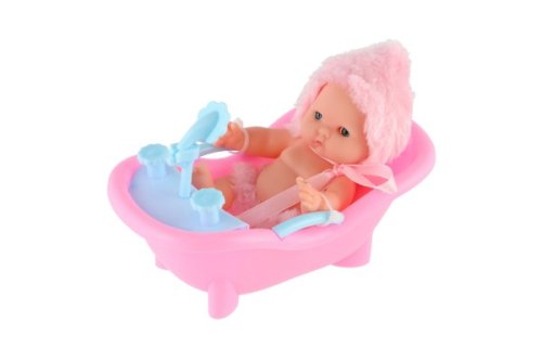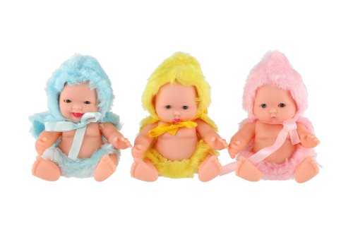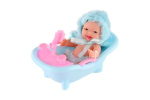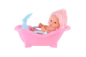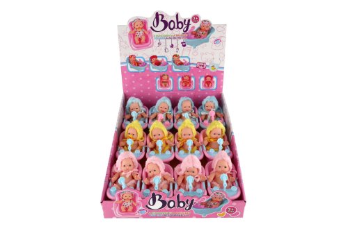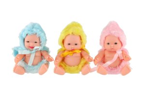 Touto bábikou zaručene urobíte radosť každému dievčatku. Bábika je oblečená do krásneho oblečku. Bábika má telíčko, ktoré možno omývať vlhkou vreckovkou. Rozmery výrobku 13 x 8 x 9 cm. Vhodné pre deti od 3 rokov.