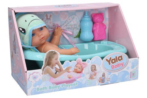 Bábätko čúrajúce s vaničkou. Veľkosť bábätka 27cm, veľkosť vaničky 30cm. Obsahuje bábätko, vaničku, potreby na kúpanie a župan.