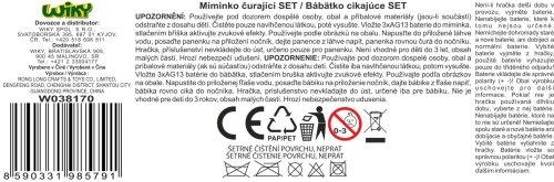 Bábätko cikajúce. Veľkosť 30cm. Bábätko pije z fľaštičky, ciká, zatvára oči pri položení na chrbát. Obsahuje bábiku, nočník, tanierik, príbor, fľaštičku, cumlík. Vydáva zvuky. 3xAG13 batéria súčasťou balenia.