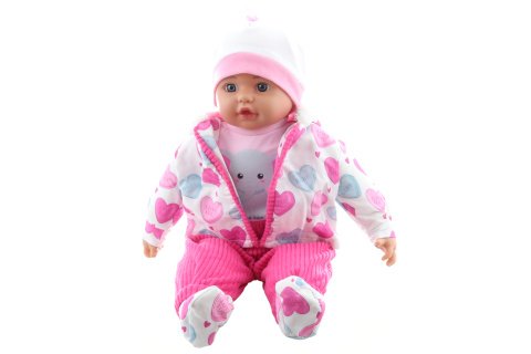 Bábätko - dievčatko v krásnom oblečení s motívom sloníka a srdiečok. Bábätko má mäkké telíčko, hlavičku a časti končatín z tvrdšieho plastu. Veľkosť bábätka cca 50 cm. Balené v sáčku. Vek 3+