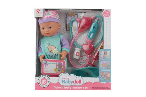Krásna sada pre starostlivé dievčatká. Balenie obsahuje bábätko v oblečení o veľkosti cca 30 cm a doktorandské pomôcky potrebné na liečenie malého pacienta. Balené v krabici. Rozmery balenia cca 30x32x10 cm. Vek 3+