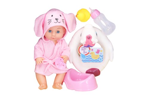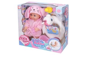 Bábätko s kruhom. Veľkosť 27 cm. Obsah balenia - bábätko, župan, cumlík, nočník, kruh pre bábätko, fľaštička, kačička.