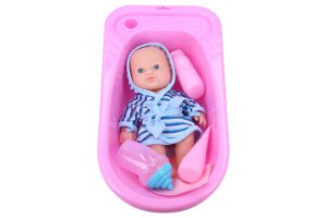 Kúpacia súprava s bábikou obsahuje všetko potrebné na kúpanie bábätka. Bábätko, ktoré je súčasťou setu sa krásne ponorí do vane a môžete ho umyť a potom aj pohodlne osušiť priloženou osuškou.