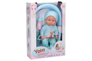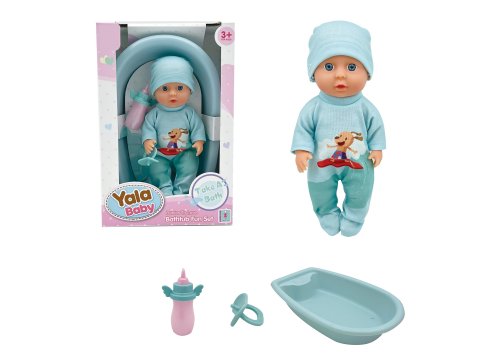 Bábätko s vaničkou modrej. Veľkosť bábätka 9x5x20cm. Veľkosť vaničky 27cm. Obsahuje bábätko, vaničku, fľaštičku na pitie a cumlík.