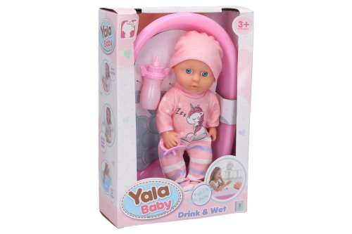 Bábätko s vaničkou ružovej. Veľkosť bábätka 9x5x20cm. Veľkosť vaničky 27cm. Obsahuje bábätko, vaničku, fľaštičku na pitie a cumlík.