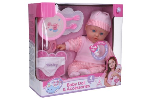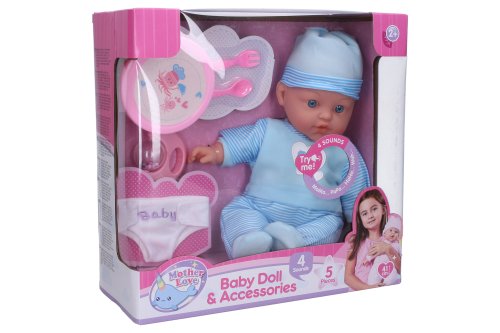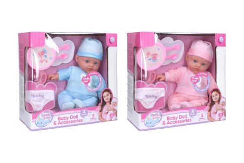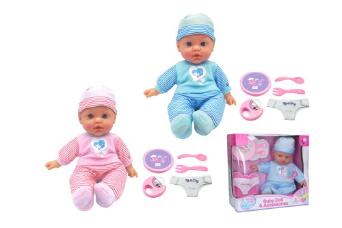 Bábätko so zvukmi a doplnkami. Veľkosť 41 cm. Balenie obsahuje bábätko, tanierik s vidličkou a lyžičkou, hrkálku a plienku. Po stlačení bruška vydáva zvuky: hovorí mama, papa, smeje sa, žvatlá. Mäkké telíčko. 2 varianty - ružová, modrá.