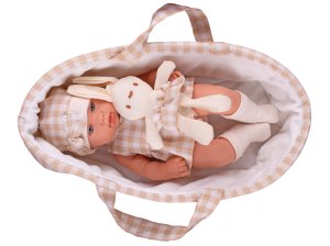Bábätko tvrdé telo 33 cm s nosítkom pre bábätká a zajačikom
