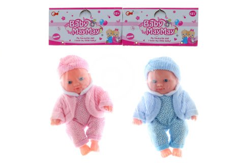 Bábätko o veľkosti 20 cm v oblečení. Bábätko má pohyblivé ruky, nohy aj hlavu. Materiál plast, telíčko nie je textilné. Balené v sáčku. Rozmery balenia cca 14x30x6 cm. 2 farby, dodávame podľa skladovej dostupnosti. Vek 3+