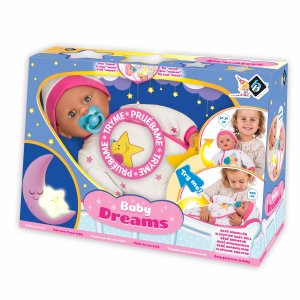 Bábätko žmurkajú so zvukmi. Veľkosť 40cm. Pri položení na chrbát zavrie oči. mäkké telíčko. Hojdaním v náručí začne vydávať zvuky. Stlačením tlačidla na hrudi hovorí.