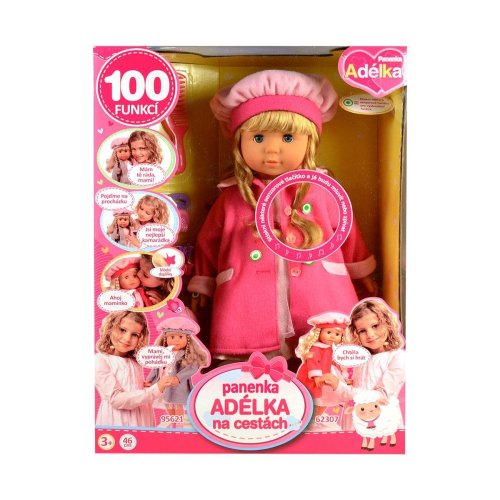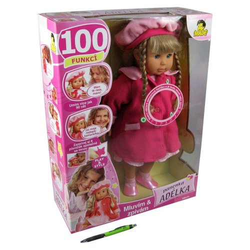 Urobte svojmu malému dievčatku radosť Bábikou Adelkou v slušivom ružovom oblečku. Vaše dieťa sa o ňu stará, češe ju a rozpráva sa s ňou. Bábika so 100 funkciami vie povedať až 90 českých viet, zaspievať jednu z ôsmich pesničiek alebo sa zasmiať.