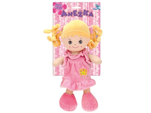 Mäkká látková bábika Anežka s blonďavými vlasmi, ktorá vie rozprávať a spievať v češtine. Takú bábiku si obľúbi každé dievčatko, ktoré má rada spievanie a riekanky. Bábika o veľkosti 36 cm. Vhodná pre deti od narodenia.