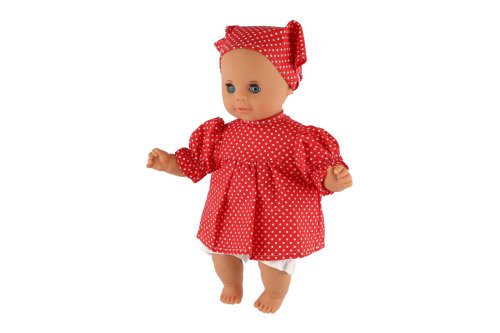 Roztomilé bábätko v šatách so šatkou si obľúbi každé malé dievčatko, ktoré sa chce hrať na mamičku a starať sa o svoje bábätko. Bábätko má látkové telo. Dĺžka 30 cm. V krabici 20x35x13m.