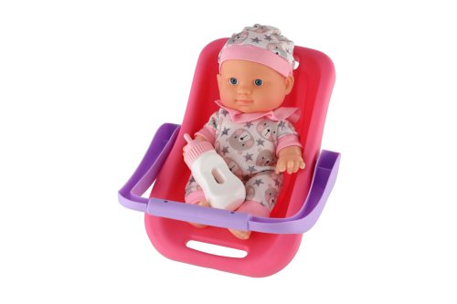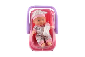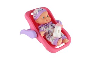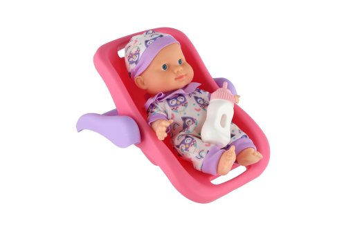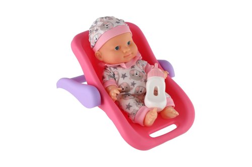 Bábika v praktickom nosítku alebo autosedačke poteší každé dieťa, ktoré sa rado hrá na rodičov. Bábätko s pevným plastovým telíčkom meria 22 cm a je doplnené fľaštičkou pre realistickú hru na kŕmenie. Vďaka pevnej konštrukcii a jednoduchému uchopeniu je hračka ideálna aj pre menšie deti. V ponuke sú dve farebné varianty. Skvelý darček, ktorý rozvíja empatiu, opatrovateľské schopnosti a predstavivosť. Veľkosť bábiky: 22 cm Vhodné pre deti od 3 rokov