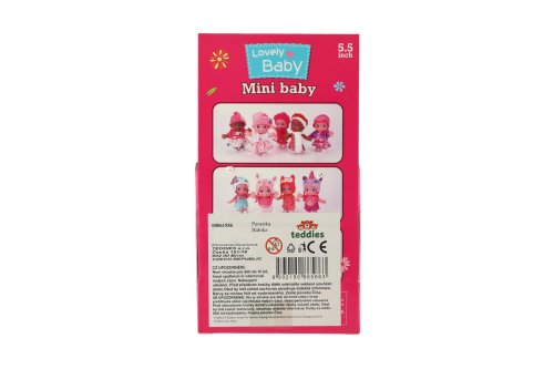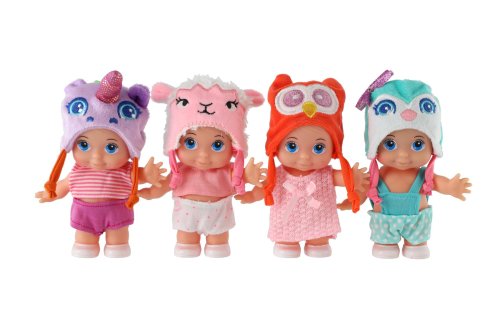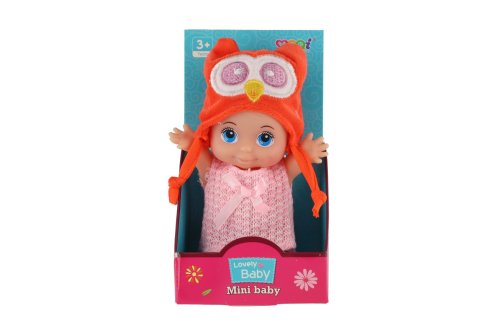 Bábika s pevným telom a čiapkou s motívom zvieratka. Bábika hýbe ručičkami v ramenách. Rozmer bábiky: 15 cm Vhodné od 3 rokov