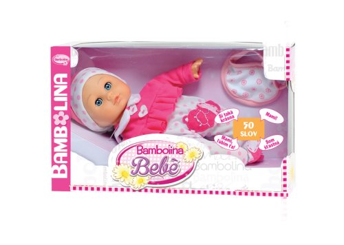 Krásne bábätko Bambolina Bebe je bábika o veľkosti 34 cm, ktorá je ideálna pre malé deti, ktoré sa chcú hrať na mamičku a starať sa o svoje bábätko. Bábika vie až 50 českých slov, vďaka čomu je interaktívna a zábavná - môže hovoriť, čo podporuje kreatívnu hru a rozvoj reči a vytvárať si vlastné príbehy. Bambolina Bebe je skvelý spoločník pre každodennú hru, ktorý prináša radosť a lásku do každého okamihu.