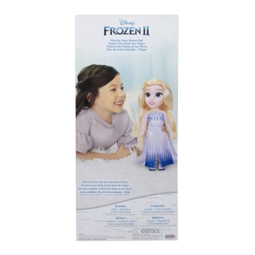 Bábika Disney Elsa 35 cm - má rozpuštgované vlasy, z ktorých môžeš vyrobiť rôzne účasy. Na sebe má fialovo trblietavé šaty, vďaka suchému zipsu sa ľahko obliekajú a topánočky.