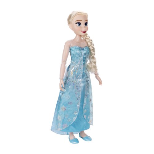 Bábika Disney Princezná Elsa 86 cm - bábika má krásne šaty a dlhé spletené vlasy. Súčasťou sú aj dve sponky do vlasov, dva hrebienky do vlasov, kefa na vlasy, dve sponky do vlasov, návod na rôzne účesy a vločkovú girlandu. Bábika je plne kĺbová, takže je dokonale pohyblivá.