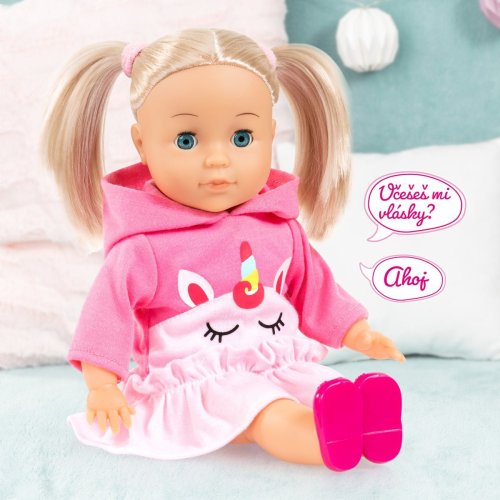 Krásna bábika s dlhými blond vlasmi a pôvabnou tvárou. Hovorí po česky – po stlačení bruška hovorí, spieva a recituje až 100 viet. Mäkké telíčko – vhodné na maznanie, objímanie aj hranie. Zatvára oči – keď nadíde čas spánku, Emma sa uloží na spánok spolu s dieťaťom. Súčasťou balenia je hrebeň a sponky - deti môžu vytvárať krásne účesy a rozvíjať svoju kreativitu. Na prevádzku sú potrebné 2ks batérie typu AAA (sú súčasťou balenia).