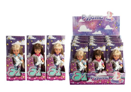 Bábika Evička v pyžame s hračkou jednorožca, 3 rôzne prevedenia. Veľkosť bábiky 12 cm.