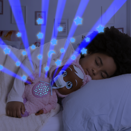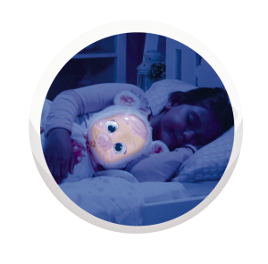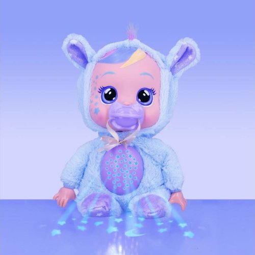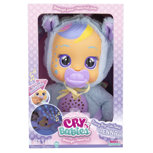 "Jenna na Dobrú noc plače LED svetelné slzy Brucho bábiky je projektor na premietanie hviezdnej oblohy. Vydáva autentické zvuky plačúceho dieťaťa Po vložení cumlíka sa upokojí a prestane plakať Hračka z mäkkého plyšu Jedinými plastovými prvkami sú ruky a hlava. Vhodné pre deti a hlavu."
