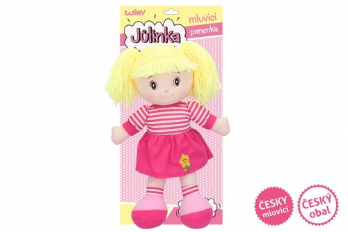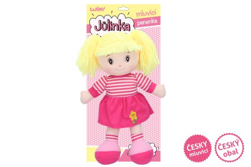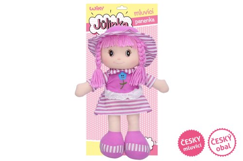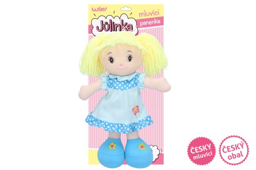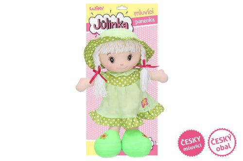 Ahoj, ja som tvoja bábika Jůlinka. Budeme sa spolu hrať celý deň a naučíme sa veľa riekaniek! Stačí stlačiť bruško a poviem Ti 4 slovenské riekanky!