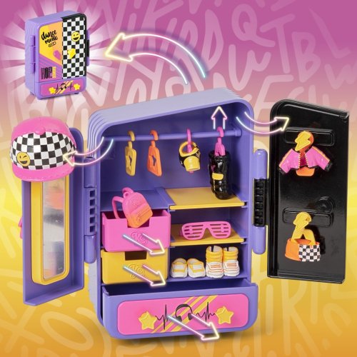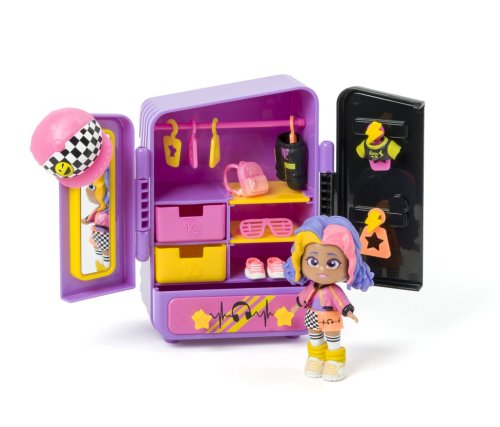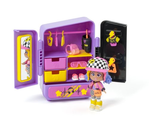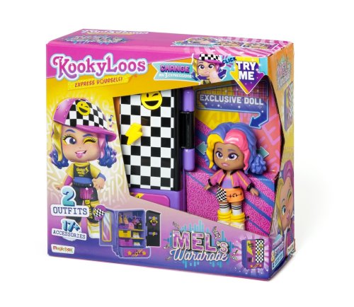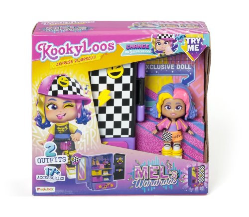 Ideálna voľba pre všetky dievčatá, ktoré milujú bábiky a módu! Aké atrakcie boli pripravené tentoraz? V sérii je až 12 mini bábik na zbieranie. Každá z nich má svoj vlastný jedinečný superštýl a môže zmeniť výraz tváre. Stačí jedno kliknutie a stane sa tak! Okrem toho sa tieto roztomilé KookyLoos líšia od seba osobností a záujmy. Medzi nimi je neobvyklá Mel. Mel miluje hip-hop a hudba a tanec sú jej vášňou, čo sa odráža v super hitových outfitoch. Vyberte si jej oblečenie pre tanečné súťaže a to, čo zodpovedá jej nálade – určite sa jej bude páčiť! Všetko záleží na nálade, sami rozhodnete čo si penenka KookyLoos oblečie. Keď hra skončí môžete všetko uložiť do praktickej šatne. Balenie obsahuje 1× exluzívnu bábiku, 2× outfit, topánočky a doplnky, vešiaky + zásuvky a 3× samolepku.