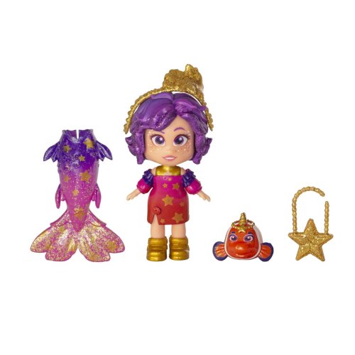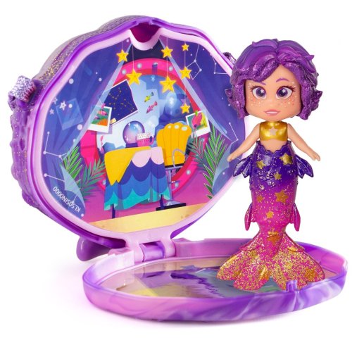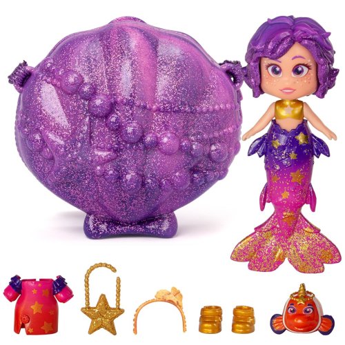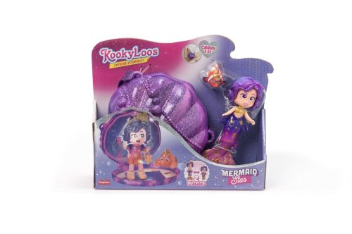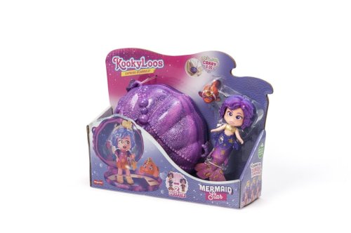 KookyLoos dobývajú aj more!Objavte Star, Pearl, Coral a Jewel - malé morské víly z Kooky Springs. Všetky sú vo vlastnej mušli, ktoré môžu slúžiť aj ako taštička a môžete si ju vziať kamkoľvek budete chcieť! Vnútri nájdete množstvo doplnkov a exkluzívneho maznáčika. Všetky navyše majú chvost morskej panny, ktorý si môžete zložiť, aby ste odhalili nožičky a obliekli ich do ultra-módneho outfitu! Tajomná a fascinujúca Star miluje pozorovanie oblohy a skúmanie najtajnejších oblastí oceánu. Rada pláva za mesačného svitu. Zaujíma sa o astronómiu a zbiera veci v tvare hviezd. Balenie obsahuje – 1× kabelka – mušle, exlusívne bábika, chvost morskej víly, exlusívneho maznáčika, extra outfit, topánky a ostatné príslušenstvo.